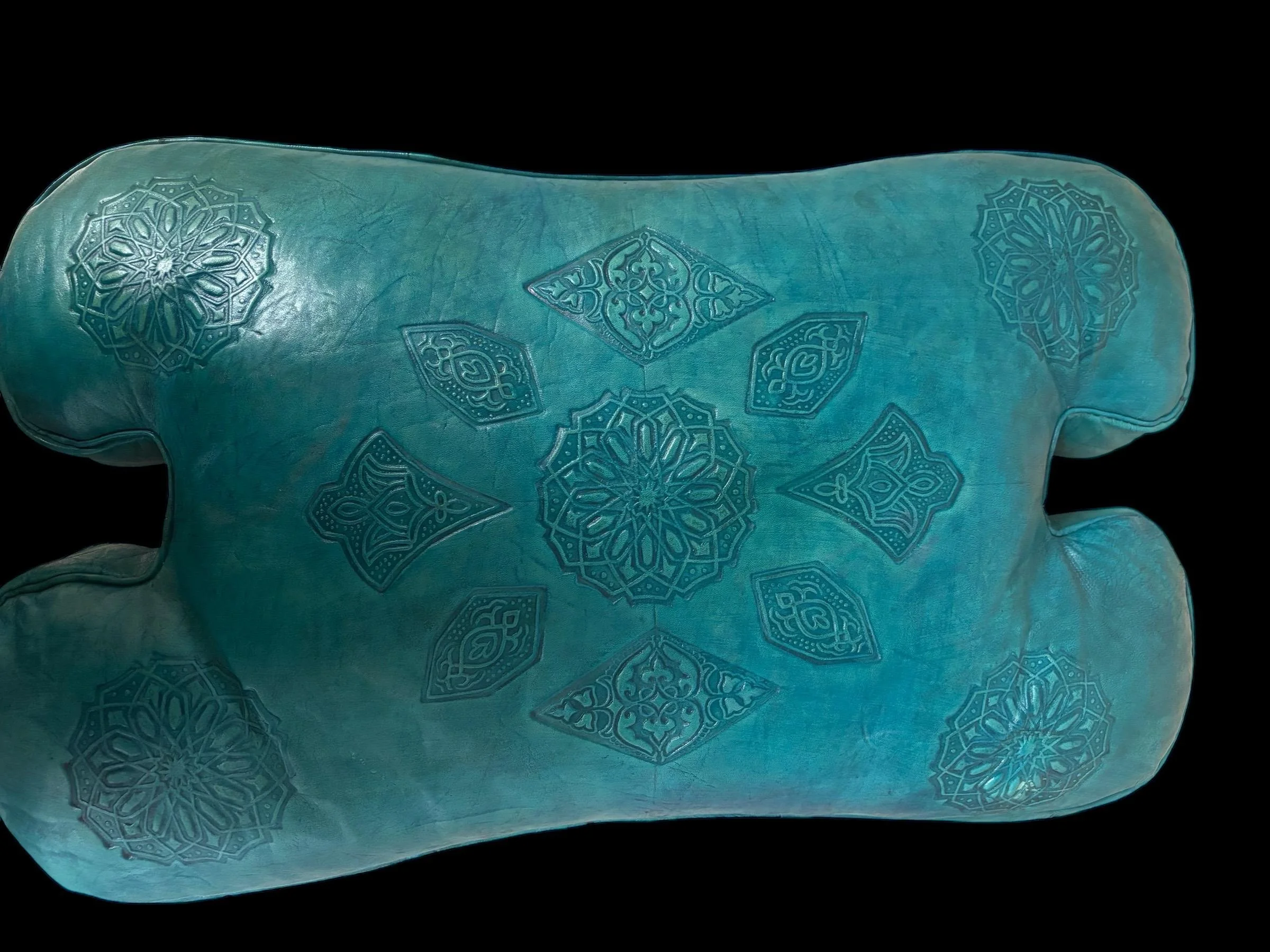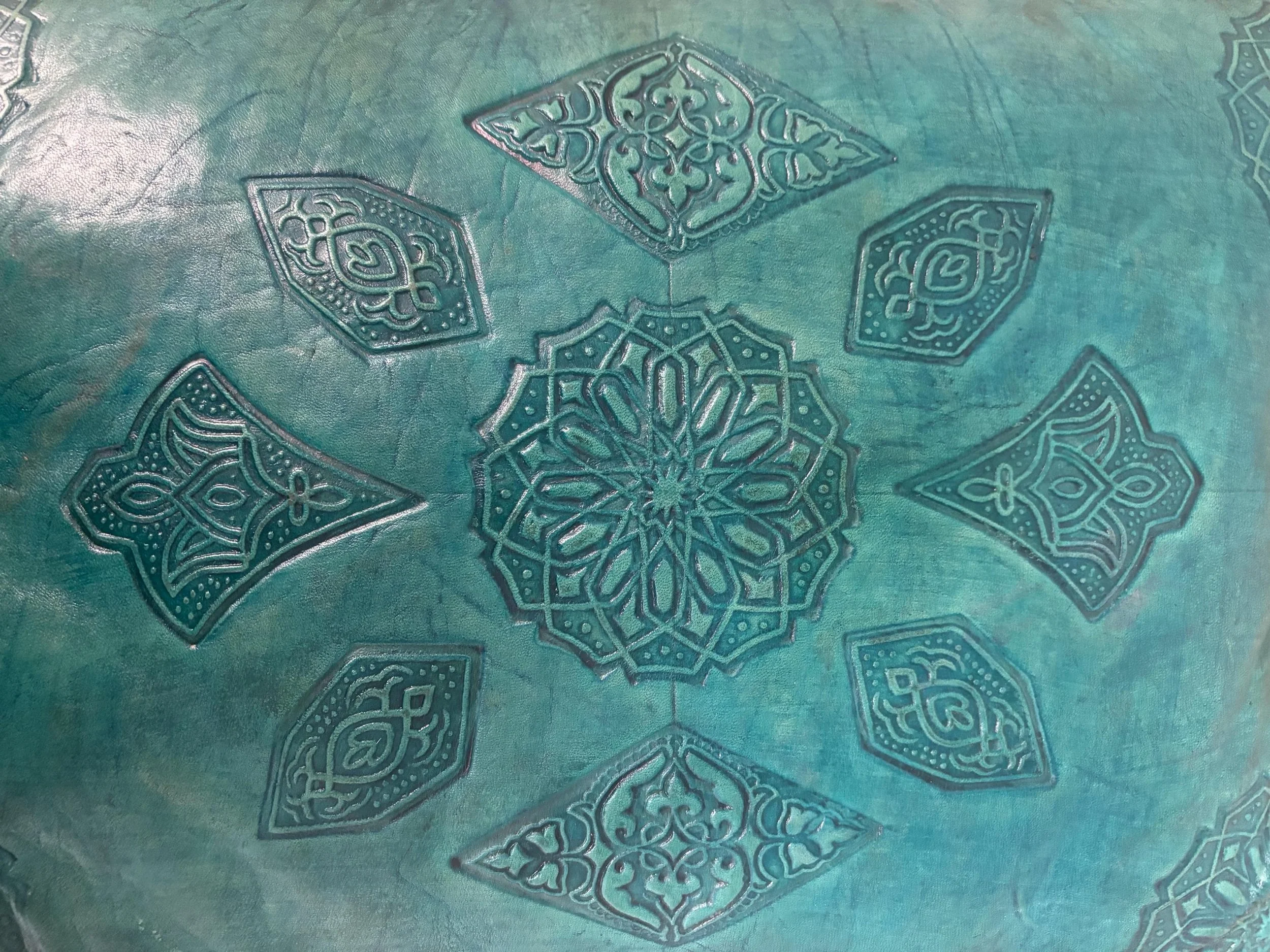 The material of a Moroccan lamp is typically goat skin. These pieces are hand-painted using henna dyes.