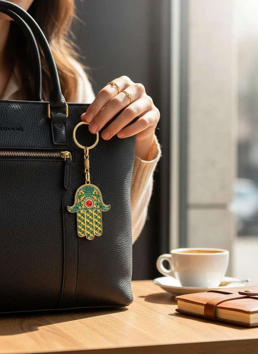 Embrace the beauty and symbolism of Morocco with our handcrafted Hamsa keychain. This exquisite piece is made from high-quality materials, showcasing intricate designs that embody protection, luck, and prosperity. Perfect for adorning your keys or as a unique accessory for your bag, this keychain adds a touch of Moroccan charm to your everyday items.