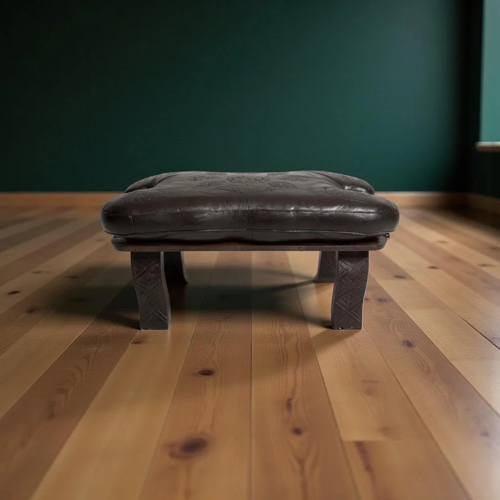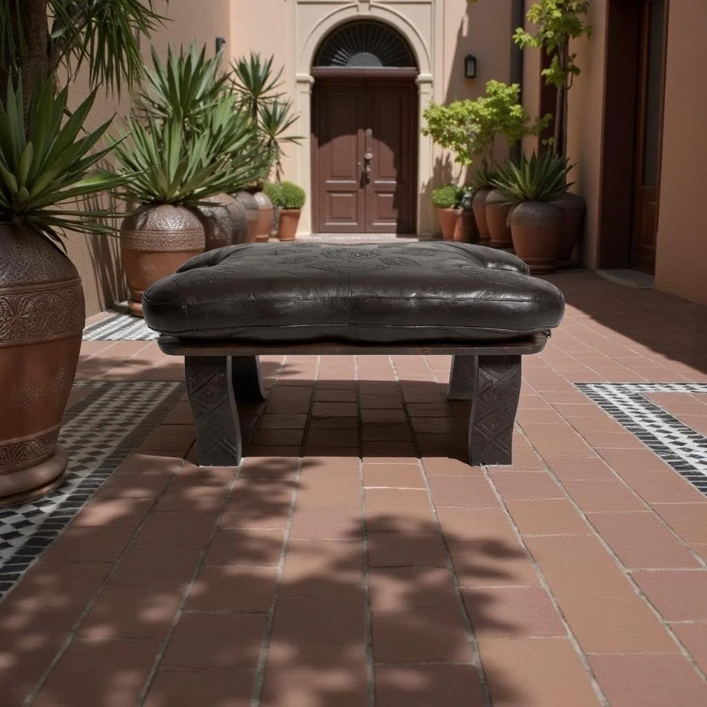 - Black Cushion: The stunning Black leather cushion adds a pop of color and comfort, making it a perfect accent for any room. The detailed leatherwork features beautiful patterns that reflect the rich heritage of Moroccan artistry.