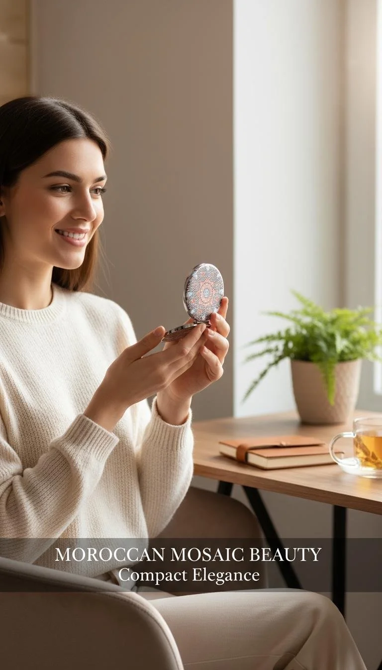 Elevate your beauty routine with our exquisite Moroccan Pocket Mirror, a perfect blend of functionality and intricate artistry. Handcrafted by skilled artisans, this mirror features stunning traditional Moroccan designs, showcasing vibrant colors and patterns that reflect the rich cultural heritage of the region.
