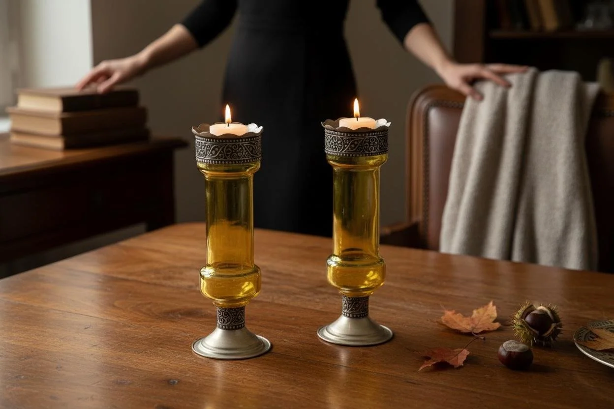 Set the mood for relaxation in your living area, bedroom, or dining space, and pair them with your favorite candles for an inviting atmosphere. Thoughtfully surrounded by charming autumn accents like dried leaves and chestnuts, these candle holders make a perfect gift for housewarmings, weddings, or special occasions. Transform your home into a serene oasis with this captivating decor piece, and indulge in the beauty of Moroccan craftsmanship. Add them to your cart today to brighten your space with elegance!