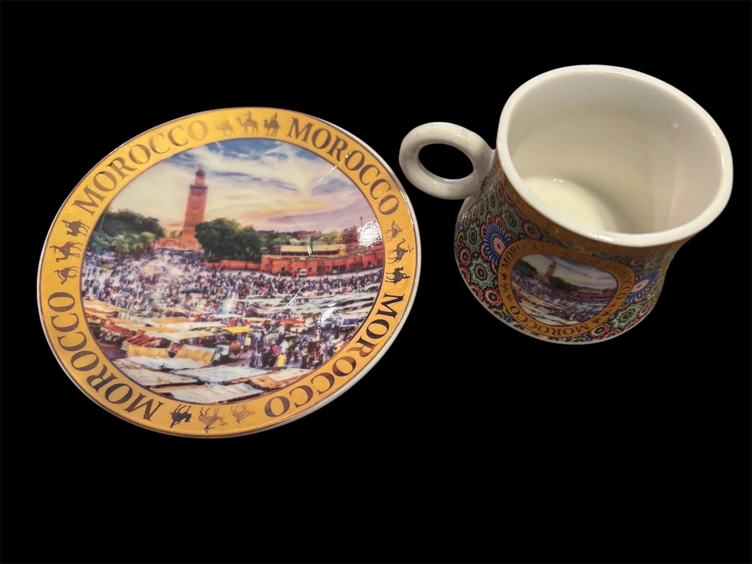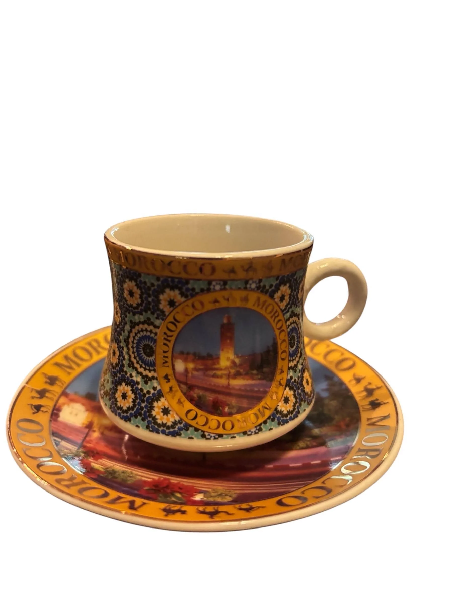Discover the allure of Moroccan design with these individually available decorative cups and saucers. Each piece is adorned with vibrant patterns and captivating imagery, perfect for adding a touch of exotic elegance to your collection or as a distinctive gift. Choose your favorite design and bring the spirit of Morocco into your home.